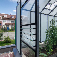 Длина базовой теплицы - 3,2 м., в комплекте: дверь-купе и две форточки в крыше.