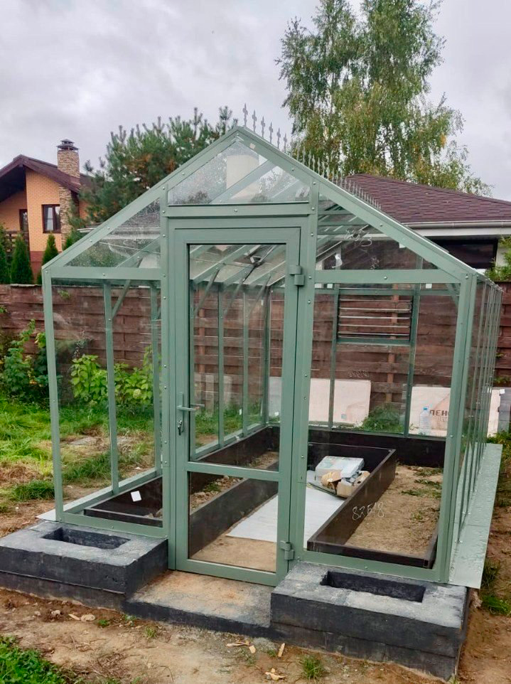 Длина базовой теплицы - 4 м., в комплекте: дверь-купе и две форточки в крыше.